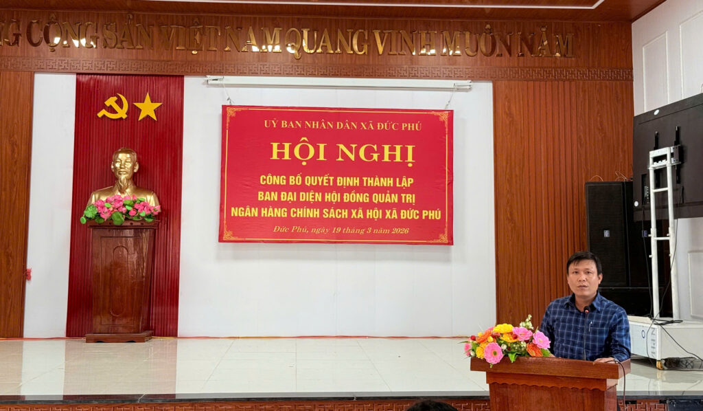 Chiều ngày 19/3/2026, tại UBND xã Đức Phú đã long trọng tổ chức Hội nghị công bố quyết định số 158/ QĐ-UBND thành lập Ban đại diện Hội đồng quản trị Ngân hàng Chính sách xã hội xã Đức Phú.