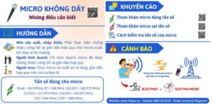 – Đối với người sử dụng micro không dây: Chỉ sử dụng micro không dây có tần số được phép hoạt động để tránh gây can nhiễu có hại cho các hệ thống thông tin vô tuyến điện đang hoạt động hợp pháp và bị xử lý vi phạm hành chính, tịch thu thiết bị. Người sử dụng có thể kiểm tra micro không dây của mình theo các Bước sau: