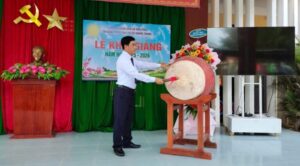 Thầy Hiệu trưởng đánh trống khai giảng năm học