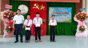 Ông Ngô Đức An – Đại diện UBND tặng quà cho học sinh khó khăn