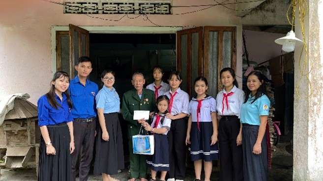 1. Thăm hỏi tặng quà các gia đình chính sách, gia đình có công cách mạng: Ngày 18/12/2025, Chi đoàn trường, Tổng phụ trách, BCH Liên đội phối hợp cùng Liên đội trường THCS Hoàng Diệu và đoàn xã Đức Phú tổ chức thăm hỏi, động viên và tặng quà các gia đình chính sách, gia đình có công với cách mạng trên địa bàn. Thông qua hoạt động này, các thế hệ học sinh, đoàn viên đã thể hiện sự tri ân đối với những hy sinh, đóng góp to lớn của các thế hệ đi trước cho sự nghiệp đấu tranh giải phóng dân tộc và bảo vệ Tổ quốc. Hoạt động không chỉ mang ý nghĩa nhân văn sâu sắc mà còn góp phần giáo dục truyền thống “Uống nước nhớ nguồn” cho học sinh.