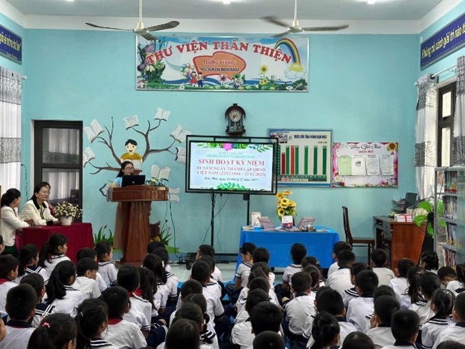 Trong tiết chào cờ sáng ngày 22/12/2025, nhà trường đã tổ chức truyên truyền cho học sinh, giáo viên về truyền thống Quân đội nhân dân Việt Nam qua 81 năm xây dựng và trưởng thành. Tổ chức thi rung chuông vàng cho học sinh khối 3,4,5 tìm hiểu 81 năm ngày thành lập Quân đội nhân dân Việt Nam (22/12/1944 – 22/12/2025) và 36 năm ngày Hội Quốc phòng toàn dân (22/12/1989 – 22/12/2025). Giới thiệu cuốn sách về Anh hùng lực lượng vũ trang nhân dân Vừ A Dính.