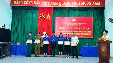 – Uỷ ban MTTQVN xã Đức Phú tặng giấy khen cho 9 tập thể và 10 cá nhân hoàn thành xuất sắc nhiệm vụ.